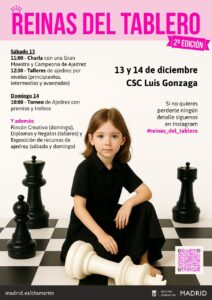 Reinas del Tablero (2ª edición) Cuándo 13 de diciembre de 2025 - 14 de diciembre de 2025 00:00 Añadir al calendario Descargar ICS Google Calendar iCalendar Office 365 Outlook Live